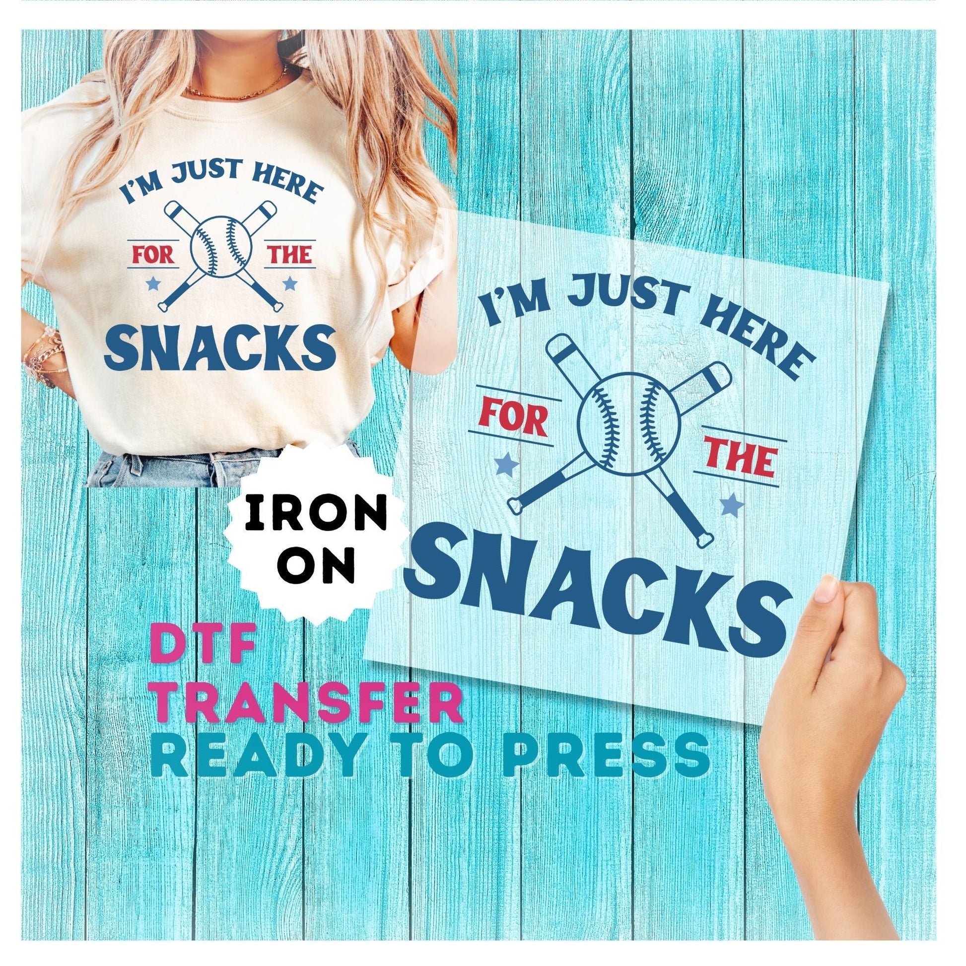 Funny Baseball Here For The Snacks DTF Transfer