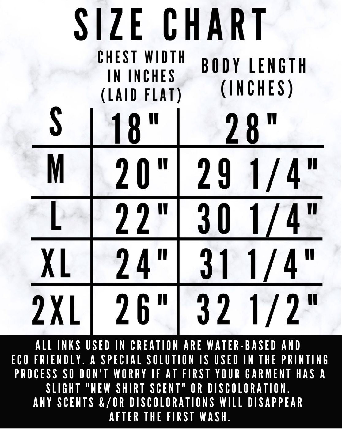 - Unisex fit and sizing (there are two different size charts for each garment)